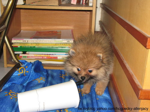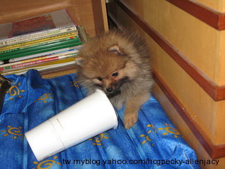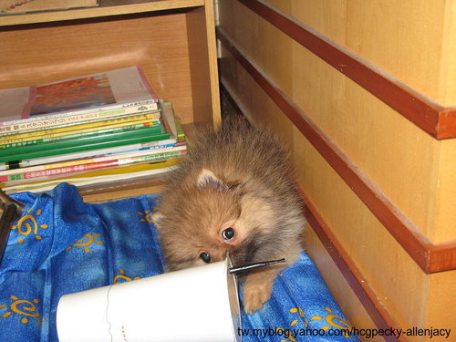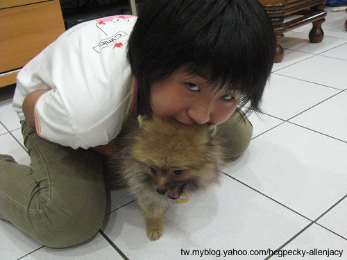 這才知道,原來博美狗常常會有氣管跟膝關節的問題,而且是從小到大都得注意。不能摔到牠、不讓牠從高處往下跳、不能吃太胖、要常常梳毛,不然會打結。每個月要滴/吃藥,防止寄生蟲、跳蚤、心絲蟲之類的、幼犬三個月內,預防針沒打完不要帶出門.....。天阿,皮皮牠們以前怎麼隨便就長大了? 也沒看阿媽有這麼小心注意阿?