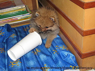 可是阿,到現在,快一個月,我承認,不只牠在學,牠在適應我們家的一切,其實,我們也在適應牠。怕踩到牠,踢到牠;玩的時候不能太過火,怕摔到牠。
