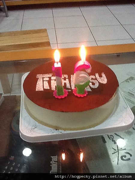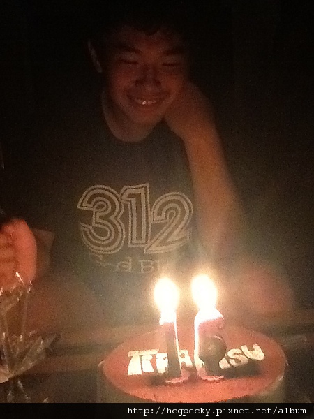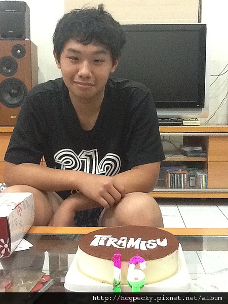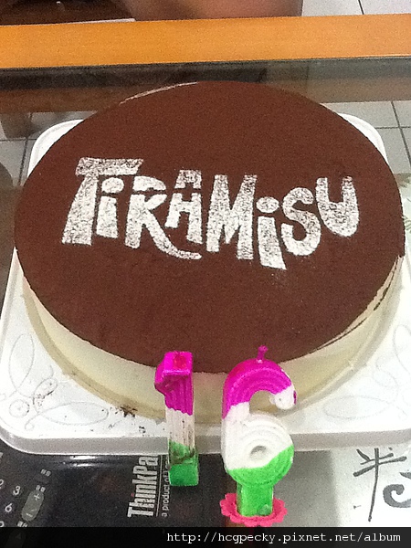 當然,這蛋糕是他自己選的,提拉米蘇喔